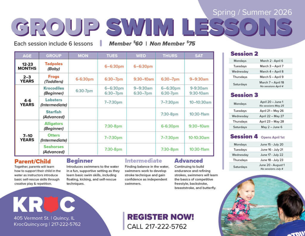 The Quincy Kroc Center’s aquatics department, complete with certified American Red Cross Certified lifeguards, is dedicated to providing top-quality classes and training. In addition to the facility being Infant Swim of America certified, our trained instructors are able to teach swim lessons to all ages and abilities.